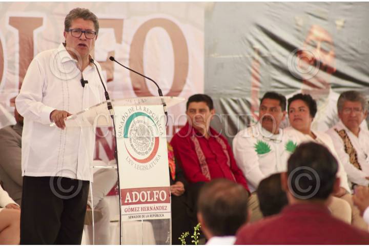 Ricardo Monreal durante el informe de actividades legislativas en la Plaza de la Danza en la capital del estado de Oaxaca.