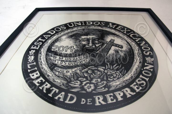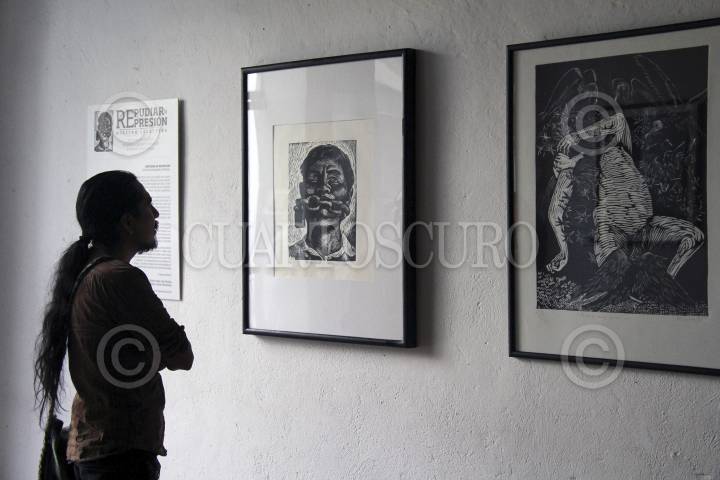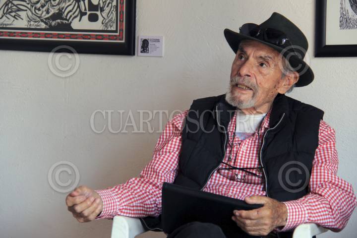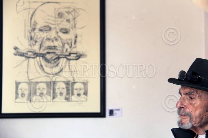 CUERNAVACA, MORELOS, 08NOVIEMBRE2014.- En la Casona Spencer fue inaugurada la muestra colectiva titulada Repudiar la Represión, un Homenaje a los 60 años del grabado Libertad de Expresión del maestro Adolfo Mexiac. La presentación estuvo a cargo de Oscar Menéndez, Alberto Híjar y Adolfo Mexiac. FOTO: PATRICIA MORALES /CUARTOSCURO.COM