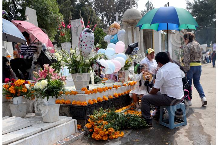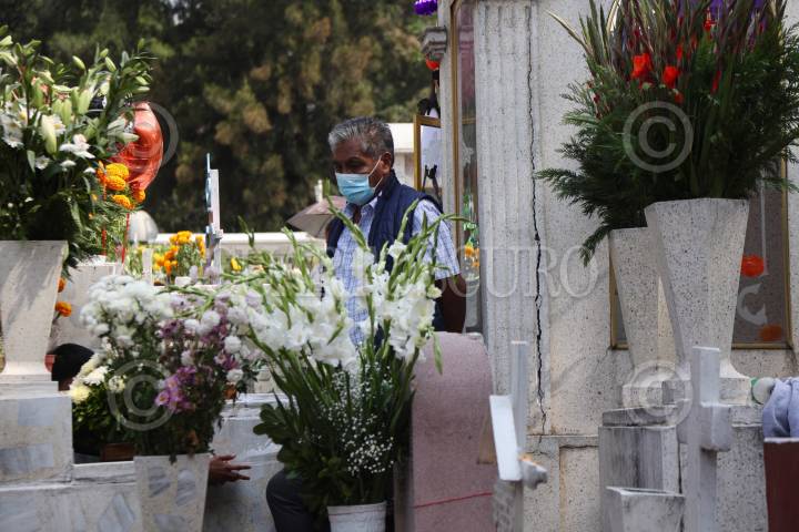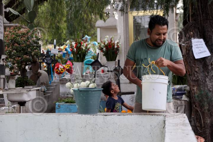 CIUDAD DE MÉXICO, 01NOVIEMBRE2019.- Familias asisten al Panteón de de Xoco, en la alcaldía de Benito Juárez, para limpiar y adornar las tumbas con motivo del Día de Muertos. FOTO: GALO CAÑAS /CUARTOSCURO. COM