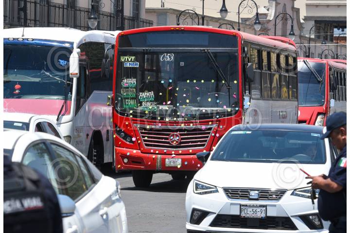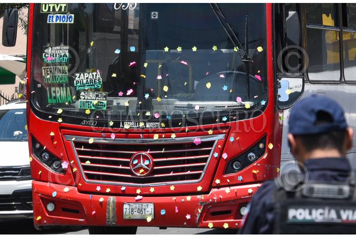 Un camión de la línea Estrella del Noreste fue adornado con pequeños papelitos y mensajes de cariño, mientras cubría su ruta Lerma-Terminal.