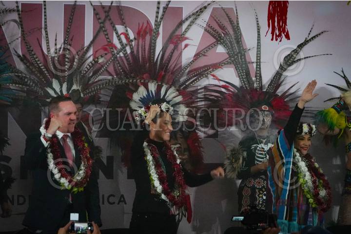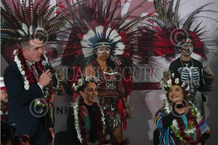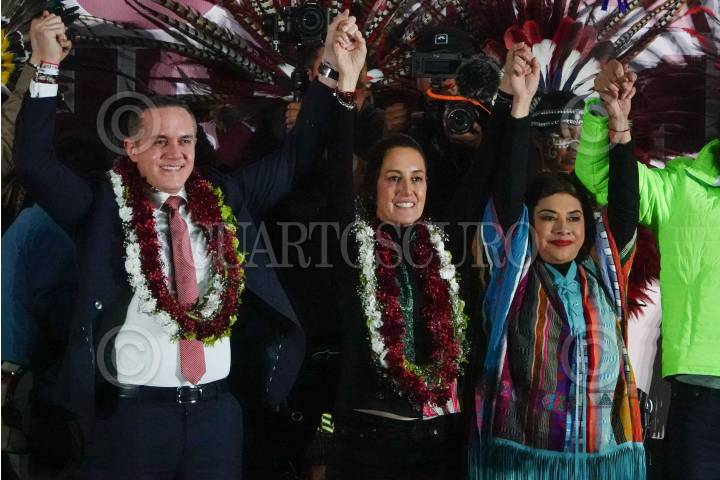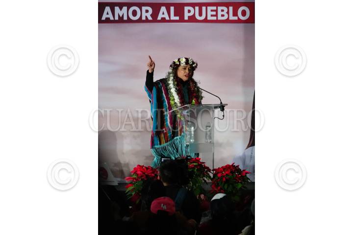 CIUDAD DE MÉXICO, 21DICIEMBRE2023.- Claudia Sheinbaum, precandidata a la presidencia por Morena, Clara Brugada, precandidata por Morena a la jefatura de Gobierno de la Ciudad de México y Adrian Rubalcava, alcalde de Cuajimalpa, encabezaron un mitin en el Deportivo El Cacalote de la alcaldia Cuajimalpa. FOTOS: ROGELIO MORALES /CUARTOSCURO.COM