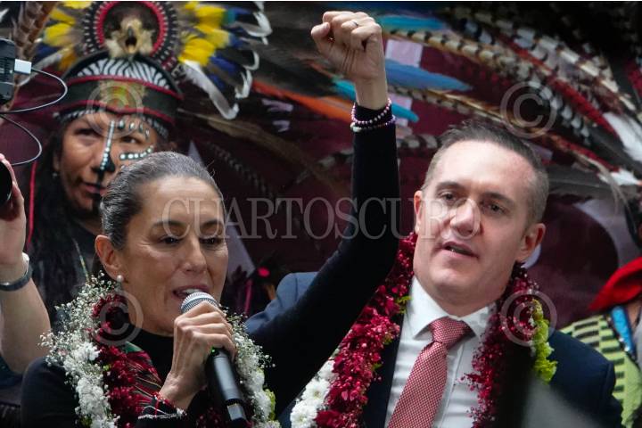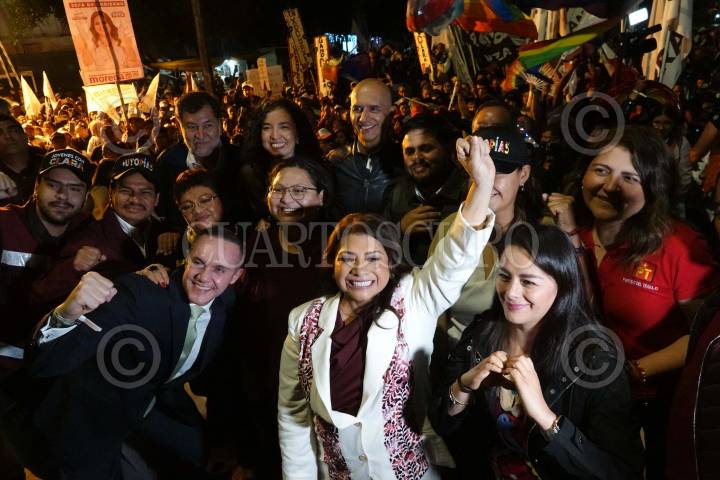 CIUDAD DE MÉXICO, 21ABRIL2024.- Clara Brugada, candidata a Jefa de Gobierno, durante el festejo del Segundo Debate Chilango en las instalaciones del Grupo MVS. FOTO: GRACIELA LÓPEZ /CUARTOSCURO.COM
