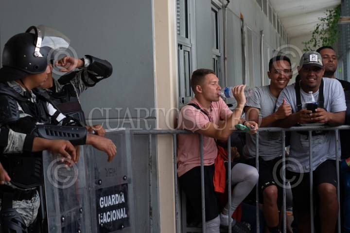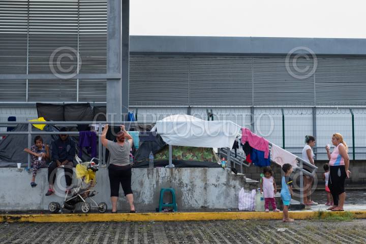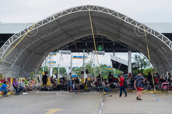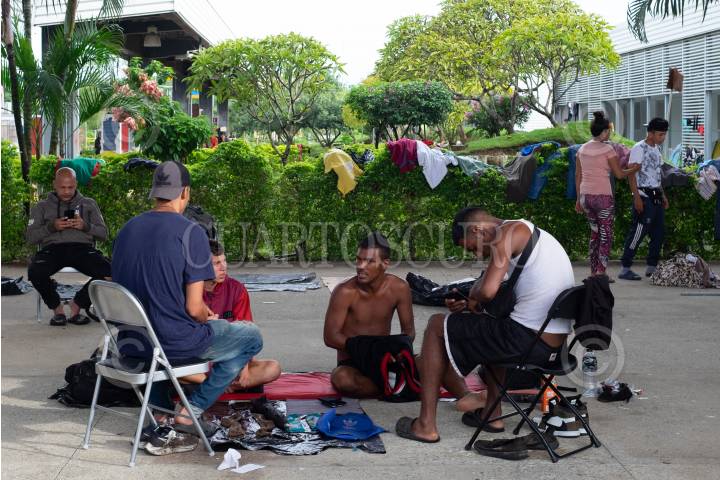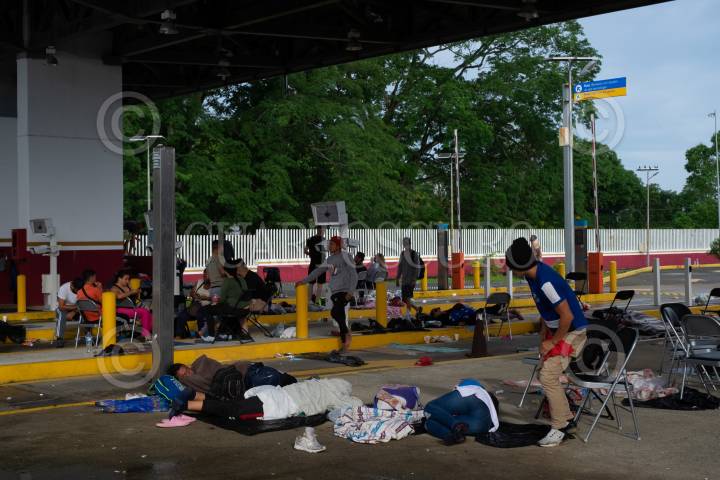 Integrantes de la Caravana migrante que partió el pasado seis de junio de Tapachula permanece en la Aduana de Cerro Gordo esperando ser atendidos para otorgarles el formato múltiple con vigencia 30 días para poder salir del país en cualquier a de sus fronteras.