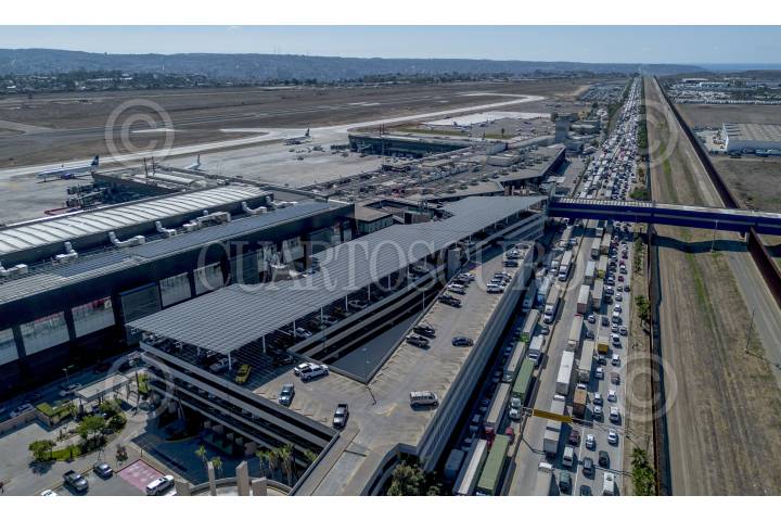 TIJUANA, BAJA CALIFORNIA, 19SEPTIEMBRE2023.-Un fuerte congestionamiento vial se registró en avenidas de Otay y la zona del Aeropuerto Internacional de Tijuana, derivado de una caída del sistema de Aduanas estadounidense en la garita de Otay Mesa. La falla en el sistema inició alrededor de las 8:00 horas de este martes y fue hasta las 11 de la mañana que las operaciones comenzaron nuevamente. Derivado de esto, la zona de Otay se colapsó tras este incidente, donde miles de trailers quedaron varados en el tráfico. Este incidente a estado ocurriendo de manera más frecuente en los últimos días, causando la molestia de muchos conductores. Desde la colonia Libertad Parte alta, la carretera Aeropuerto, hasta Bellas Artes, el tránsito vehicular a estado detenido por horas derivado de las largas filas de los tractocamiones. FOTO: OMAR MARTÍNEZ/ CUARTOSCURO.COM
