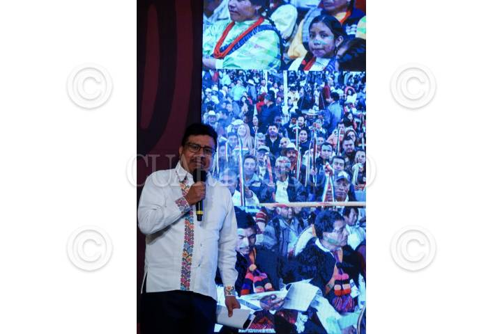 CIUDAD DE MÉXICO, 21FEBRERO2024.- Adelfo Regino Montes, director general del Instituto Nacional de los Pueblos Indígens (INPI), expone los puntos de la Reforma Constitucional sobre los Derechos de los Pueblos Indígenas y Afromexicanos durante la conferencia matutina. FOTO: GALO CAÑAS/CUARTOSCURO.COM