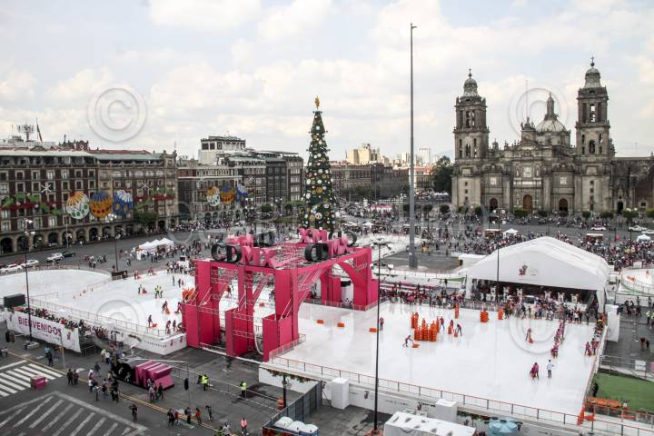 CIUDAD DE MÉXICO, 17DICIEMBRE2016.- Sigue la diversión para cientos de personas que asisten a la pista de hielo instalada en la plancha del Zócalo de la Ciudad de México. FOTO: ANTONIO CRUZ /CUARTOSCURO.COM