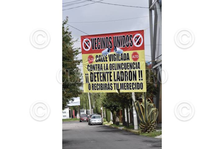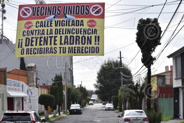 METEPEC, ESTADO DE MÉXICO, 31JULIO2019.- Vecinos de la Colonia Casa Blanca colocaron matas para inhibir la delincuencia q se ha presentado en la zona, advirtiendo que se está vigilando el lugar. FOTO: CRISANTA ESPINOSA AGUILAR /CUARTOSCURO.COM
