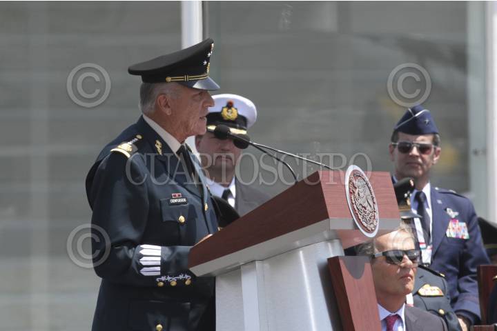 TECÁMAC, ESTADO DE MÉXICO, 26ABRIL2017.- El Gral. Salvador Cienfuegos Secretario de la Defensa Nacional, en la inauguración la Feria Aeroespacial México 2017 (FAMEX), en la Base Aérea Militar Nº 1 Santa Lucia; en la cual los expositores exhiben las nuevas tecnologías del ámbito aeronáutico. FOTO: ANTONIO CRUZ /CUARTOSCURO.COM