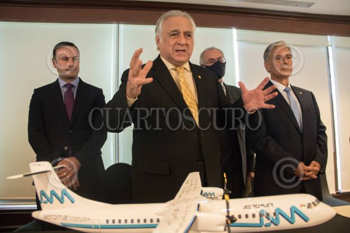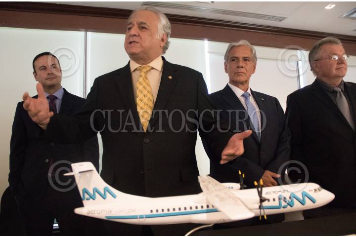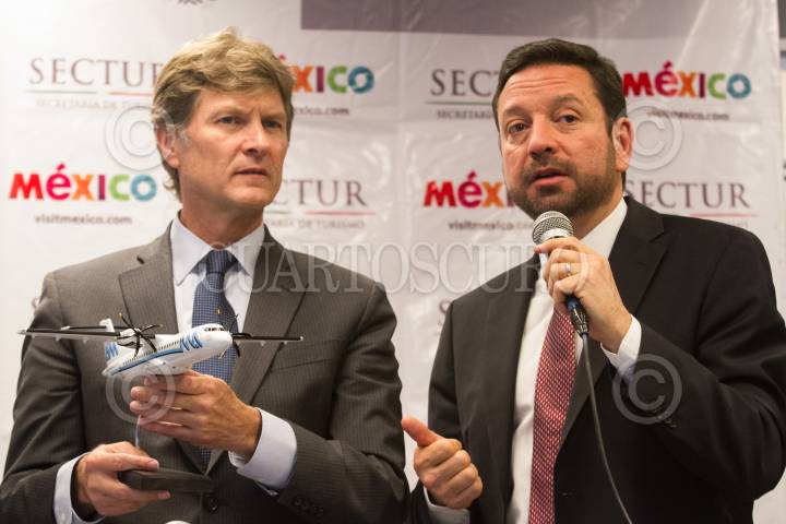 CIUDAD DE MÉXICO, 05JULIO2017.- Enrique de la Madrid Cordero, secretario de Turismo, y Andrés Fabre Robles, director general de Aeromar, durante la firma de convenio entre la Sectur, Aeromar y Mundo Maya; que es una organización internacional para impulsar la grandeza del territorio donde se extendió la civilización Maya, los estados que están adheridos a este esfuerzo son Chiapas, Campeche, Yucatán, Quintana Roo y Tabasco. FOTO: MOISÉS PABLO /CUARTOSCURO.COM