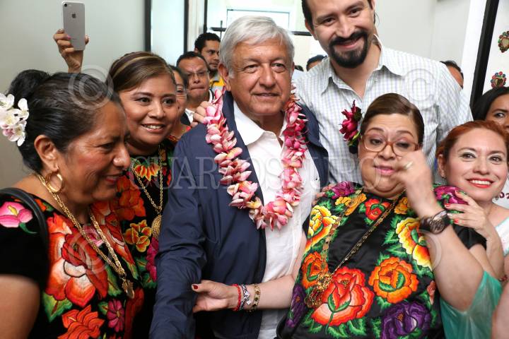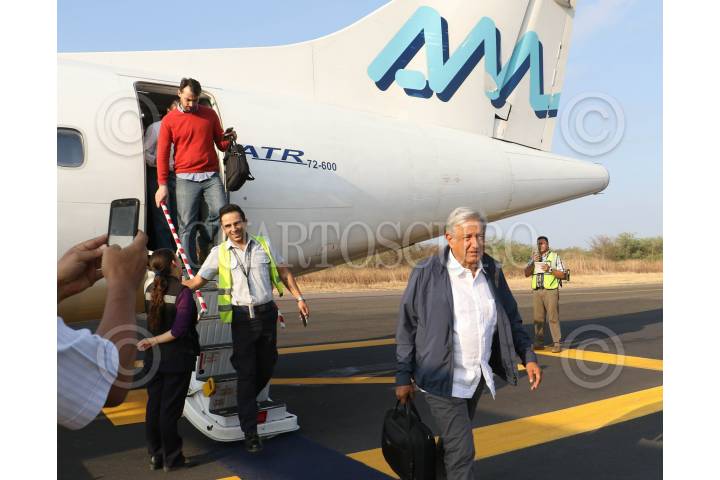 IXTEPEC, OAXACA, 30 MAYO2018.- Andrés Manuel López Obrador, candidato de MORENA a la presidencia de la república a su llegada al aeropuerto de Ixtepec donde el dia de hoy realizará actos de campaña con habitantes del Istmo de Tehuantepec. FOTO: SAÚL LÓPEZ /CUARTOSCURO.COM