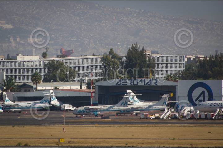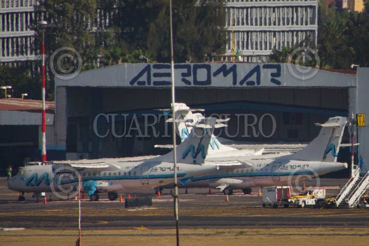 Aspectos de aviones de la aerolínea Aeromar en las inmediaciones del AICM.
