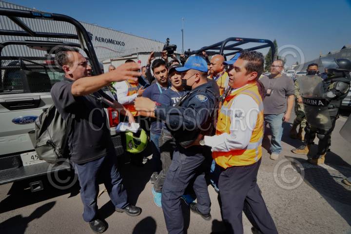 Empujones entre trabajadores de Aeromar y seguridad del aeropuerto debido a restringir el ingreso a las instalación es por cosas personales y de trabajo.