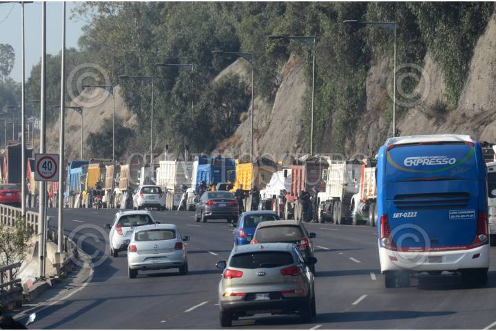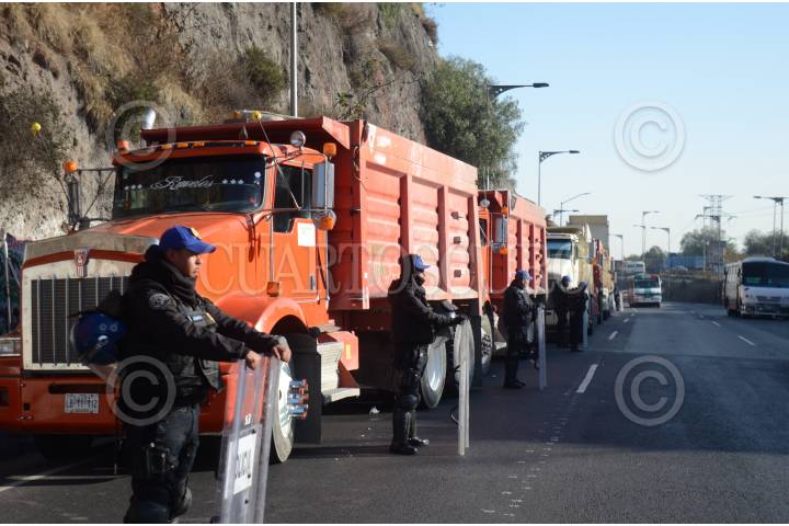 Camioneros fueron encapsulados por policías en la entrada de la autopista México Pachuca, los chóferes exigen que los tomen en cuenta en la construcción del Nuevo Aeropuerto Internacional Felipe Ángeles