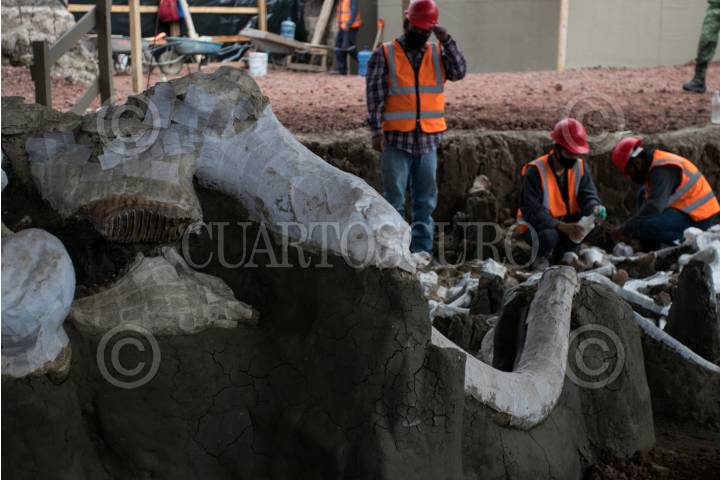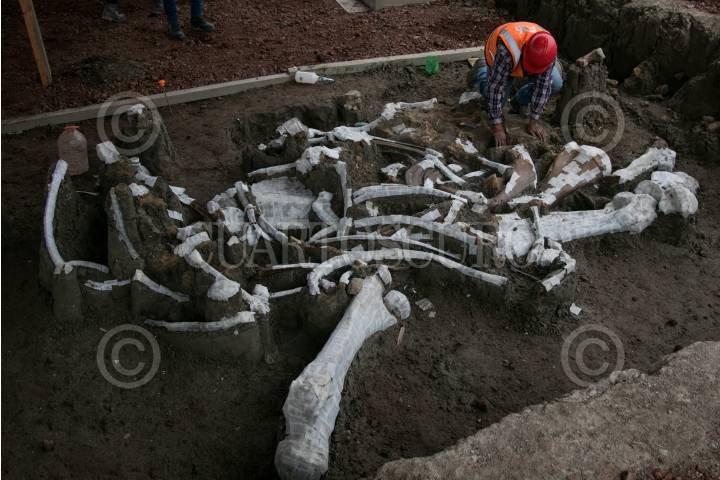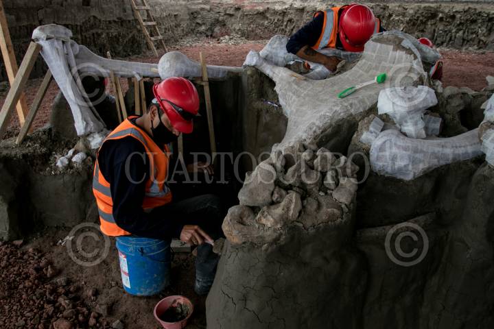 Los trabajos de hallazgo de esqueletos de mamuts continúan en el área del Aeropuerto Internacional Felipe Ángeles en Zumpango, Estado de México. Ya son más de 100 individuos hallados en el sitio y se espera que el número aumente a medida de los avances.