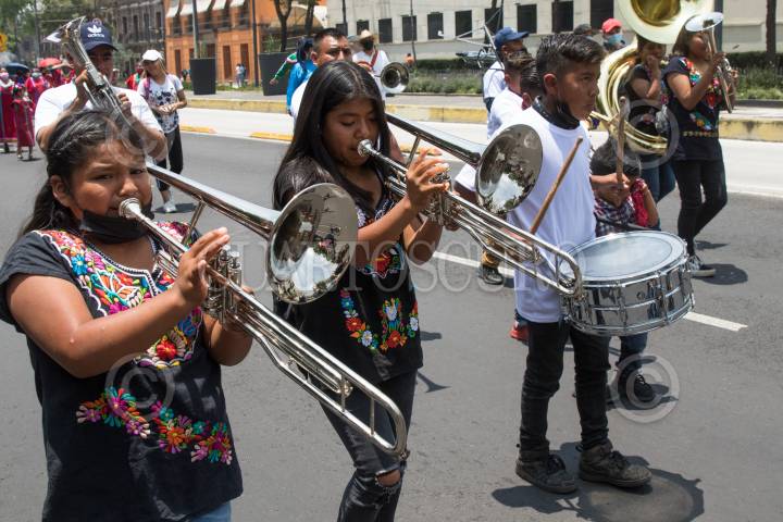 Grupos indígenas de diversas etnias marcharon sobre avenida Reforma en conmemoración del Día Internacional de los Pueblos Indígenas.