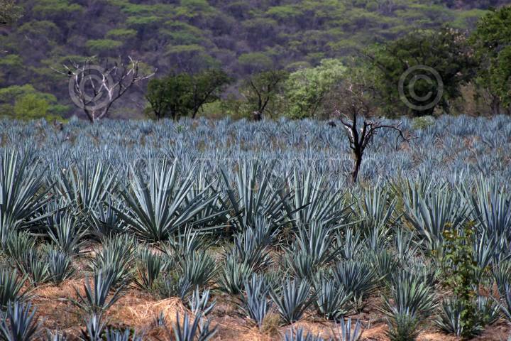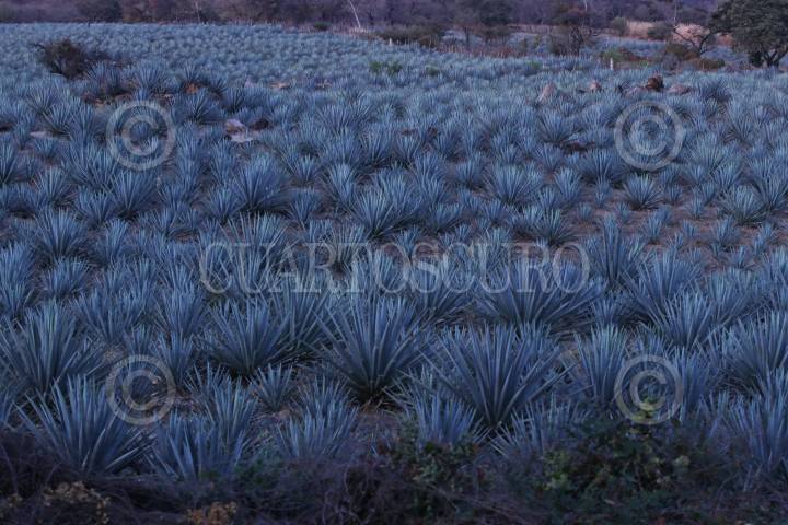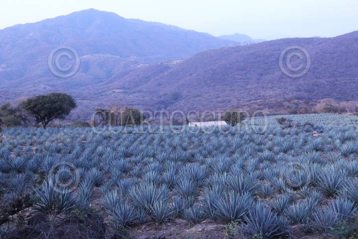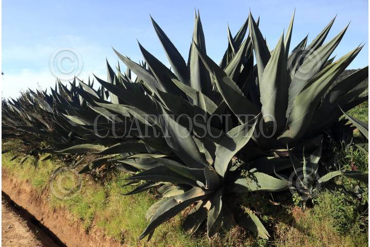 Sembradios de agave mezcalero a lado de la carretera que va al poblado de Temalac en el norte de Guerrero.