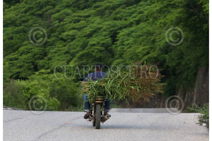 TLAQUILTENANGO, MORELOS 21JULIO2024.- Vida cotidiana en la Sierra de Huautla, un hombre maneja su motocicleta con forraje para su ganado en la comunidad de Nexpa. FOTO: MARGARITO PÉREZ RETANA/CUARTOSCURO.COM
