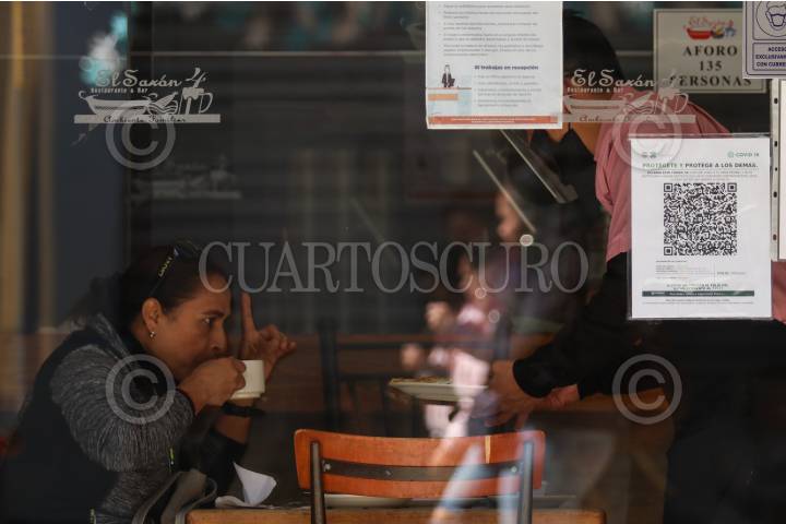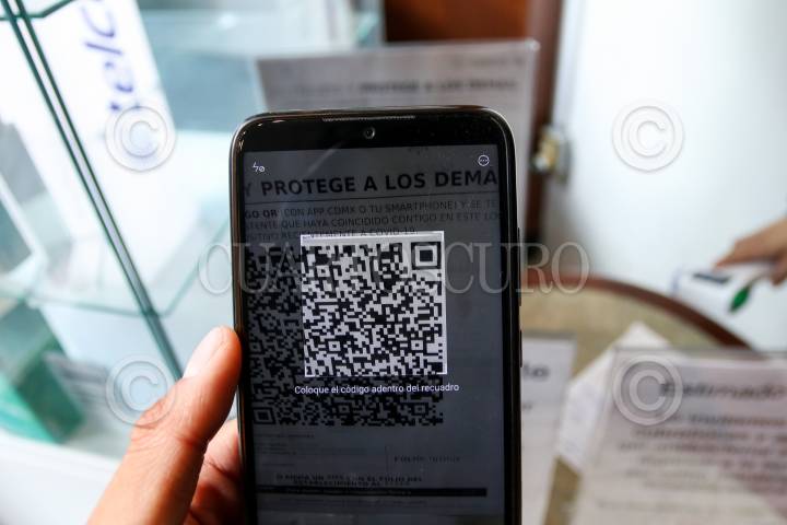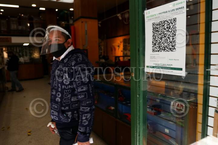Aspectos de los códigos QR colocados a la entrada de los establecimientos del centro histórico, a fin de alertar a los usuarios de lugares cerrados si estuvieron con un paciente sospechoso o confirmado de Covid-19