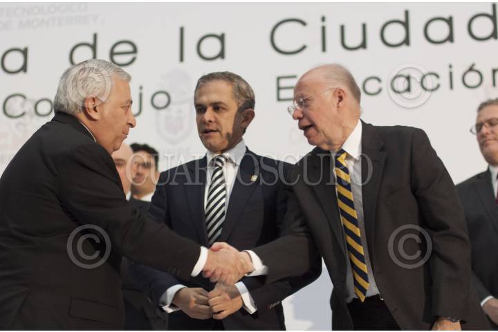 MÉXICO, D.F., 12MARZO2013.- Enrique Fernández Fassnacht, rector de la UAM, Emilio Chuayffet, secretario de Educación Pública, Miguel Ángel Mancera, Jefe de Gobierno y José Narro Robles, rector de la UNAM, durante la presentación la Agenda Educativa 2013-2018. FOTO: MOISÉS PABLO /CUARTOSCURO.COM