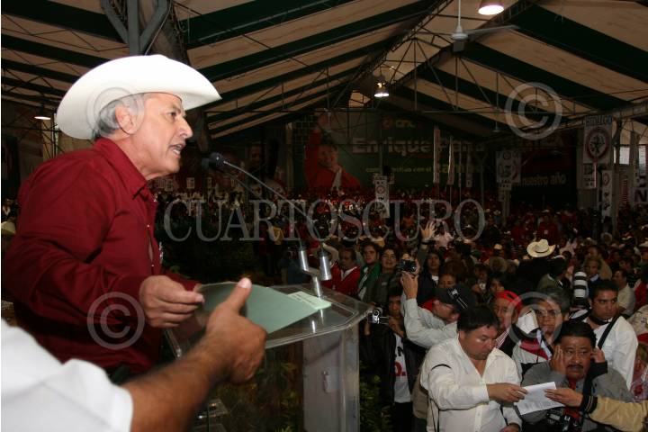 MÉXICO D.F., 26AGOSTO2009.- Cruz López Aguilar dirigente de la Confederación Nacional Campesina (CNC) a donde acudió Beatriz Paredes Rangel, dirigente nacional del PRI, donde se realizó se reunió con campesinos pertenecientes a esta organización, esto en la Casa de Agrarista. FOTO: GUILLERMO PEREA /CUARTOSCURO.COM