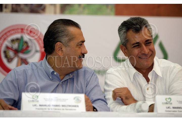 MANZANILLO, COLIMA, 24JUNIO2011.- Manlio Fabio Beltrones, presidente de la Mesa Directiva del Senado de la República se reunió esta mañana con Jesús Anguiano, Gobernador del estado de Colima con quien clausuró el Foro del Sector Agroalimentario Nacional frente a la apertura nacional. FOTO: CUARTOSCURO.COM
