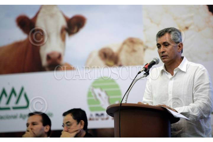 MANZANILLO, COLIMA, 24JUNIO2011.- Jesús Anguiano, Gobernador del estado de Colima clausuró el Foro del Sector Agroalimentario Nacional frente a la apertura nacional. FOTO: CUARTOSCURO.COM