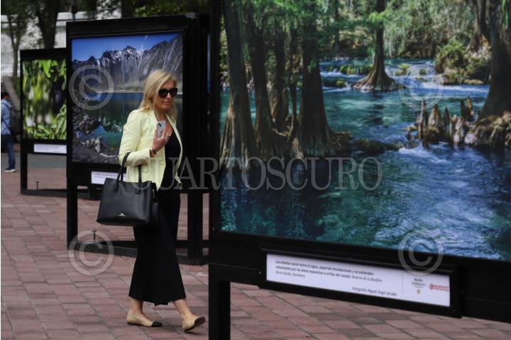 CIUDAD DE MÉXICO, 14JULIO2025.- Una persona observa las fotografías de la exposición "Agua, Biodiversidad y Conservación". FOTO: DANIEL AUGUSTO/ CUARTOSCURO.COM