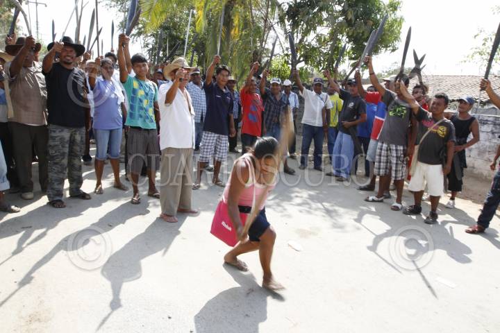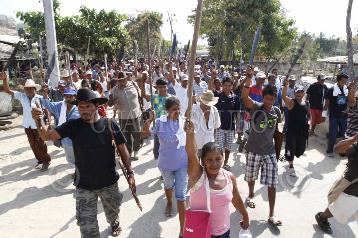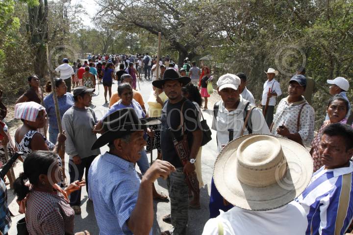 LA CONCEPCIÓN, GUERRERO, 27FEBRERO2014.- Por la madrugada elementos de la Marina, Ejercito y Policía Ministerial interrumpieron en las comunidades de la Concepción y Agua Caliente, dentro de los bienes Comunales de Cacahuatepec, intentaron arrestar al vocero del Consejo de Ejidos y Comunidades Opositores a la presa La Parota (Cecop), Marco Suástegui Muñoz, pero no lo encontraron. En su búsqueda los ministeriales manosearon mujeres, robaron alhajas y amedrentaron a dos hombres, llevándose 6 mil pesos, acusaron los afectados. Los comuneros acordaron poner retenes en distintos puntos de las comunidades para impedir el paso a las autoridades de los tres niveles de gobierno e implementar un toque de queda. FOTO: BERNANDINO HERNÁNDEZ /CUARTOSCURO.COM