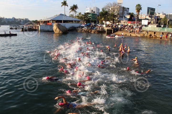 ACAPULCO, GUERRERO, 27ENERO2018.- Más de 500 competidores tomaron parte en la doceava edición de la competencia de aguas abiertas “5K Acapulco International Ronald Johnson” la cual se efectuó en la bahía de Acapulco. FOTO: CUARTOSCURO.COM