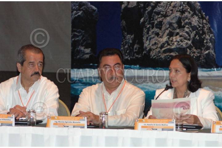 SAN JOSE DEL CABO, BCS 22MARZO2007.- Amalia García, gobernadora de Zacatecas, el gobernador Narciso Agundes Montaño y José Angel Cordova, Secretario de Salud, asisterón a la primera reunión ordinaria del consejo nacional de salud. FOTO: SSA/EDUARDO MORALES/CUARTOSCURO.COM