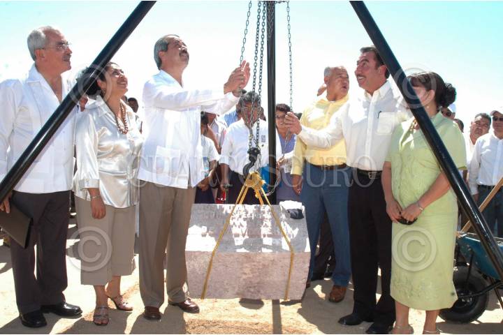LAPAZ,BAJACALIFORNIA.,08OCTUBRE2007.- José Ángel Cordoba Villalobos Secretario de Salud en compañia del gobernador del estado, Narciso Agundez y el secretario de salud estatal Francisco Cardoza, colocaron la primera piedra del hospital general "Juan María Salvatierra". FOTO:EDUARDO MORALES/CUARTOSCURO.COM