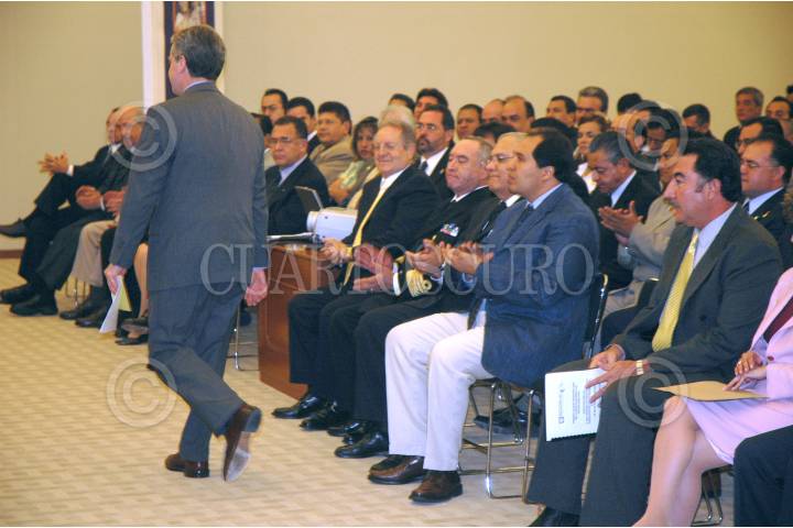 MEXICO, D.F. 17MAYO2005.- Narciso Agundez Montaño, gobernador de Baja California Sur, Lázaro Cárdenas Batel, gobernador de Michoacán, y Santiago Creel Miranda en la sesión ordinaria del consejo nacional de Protección Civil. FOTO: Iván Stephens/CUARTOSCURO.COM