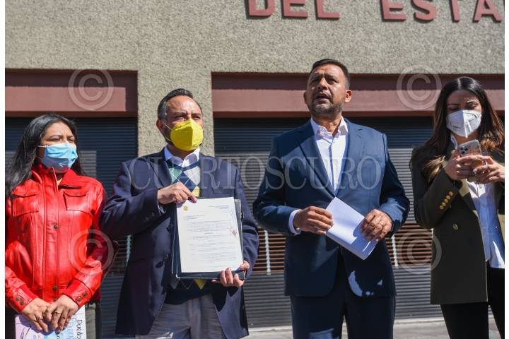 Agustín Barrera presidente estatal del PRD en el Estado de México y Javier Rivera Escalona Secretario General del partido del Sol Azteca acudieron a la FGJEM a entregar un documento para que se investigue a fondo el caso Texcoco.