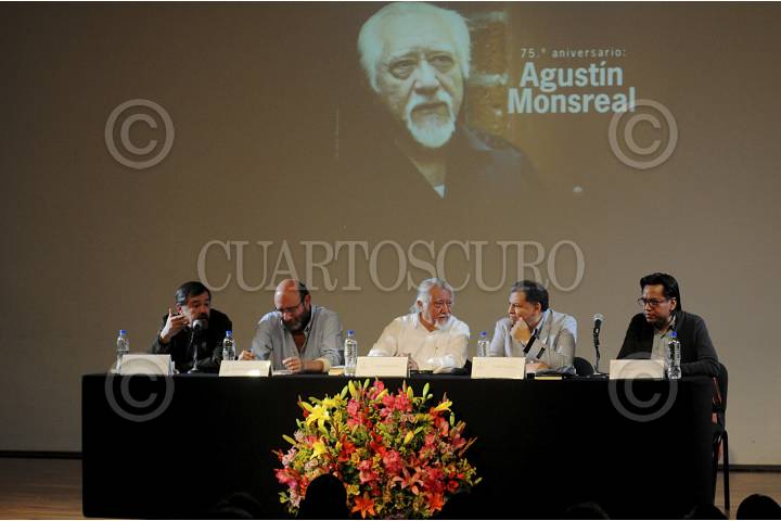 CIUDAD DE MÉXICO, 23OCTUBRE2016.- Agustín Monsreal celebró su 75 aniversario, en la Sala Manuel M. Ponce del Palacio de Bellas Artes. Lo acompañaron Marcial Fernández, Eduardo Antonio Parra, Lauro Zavala y Fernando Sánchez. FOTO: ARTURO LÓPEZ /SC/CUARTOSCURO.COM