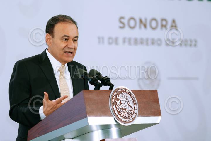 Alfonso Durazo durante la conferencia de prensa en Hermosillo, Sonora