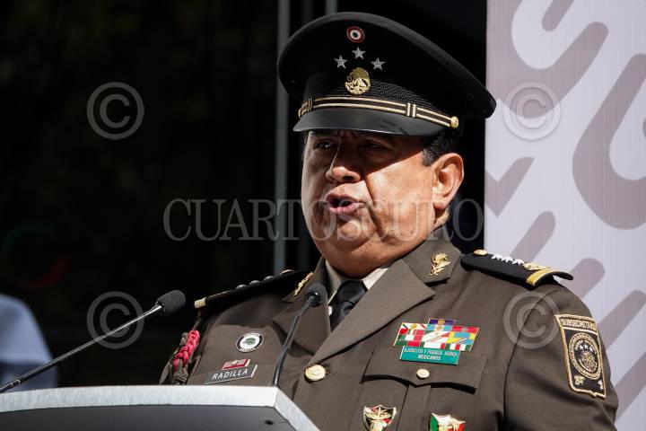 Agustín Radilla Suastegui durante la inaugurcación de la exposición fotográfica Ejército y Fuerza Aérea, más cerca de ti” en el Senado de la República.