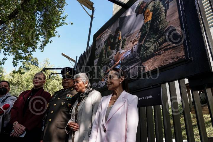 Verónica Camino Fajart; Agustín Radilla Suastegui; Josefina Vázquez Mota y Olga Sánchez; durante la inaugurcación de la exposición fotográfica Ejército y Fuerza Aérea, más cerca de ti” en el Senado de la República.