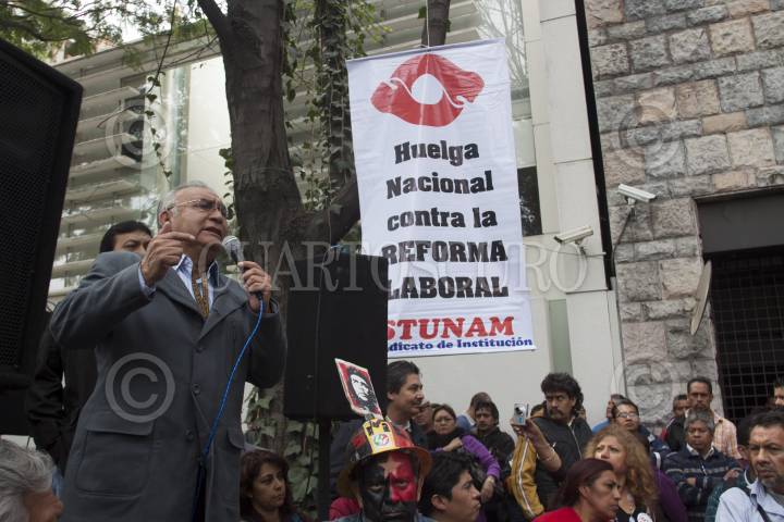 CIUDAD DE MÉXICO, 19ENERO2017.- Integrantes del Sindicato de Trabajadores de la Universidad Autónoma de México (STUNAM) se manifestaron en contra del gasolinazo en la expladana del Zócalo. En la imagen Agustín Rodríguez, líder del STUNAM. FOTO: MOISÉS PABLO /CUARTOSCURO.COM