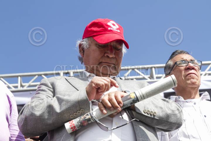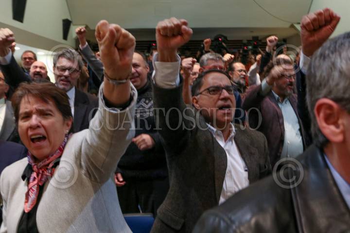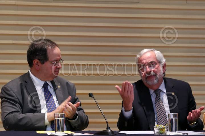 CIUDAD DE MÉXICO, 11MAYO2017.- Alfonso Navarrete Prida, secretario del Trabajo y Previsión Social (STPS), y Agustín Rodríguez, secretario general del Sindicato de Trabajadores de la Universidad Nacional Autónoma de México (STUNAM), durante la toma de nota del cambio de directiva del STUNAM periodo 2017-2020. FOTO: MOISÉS PABLO /CUARTOSCURO.COM