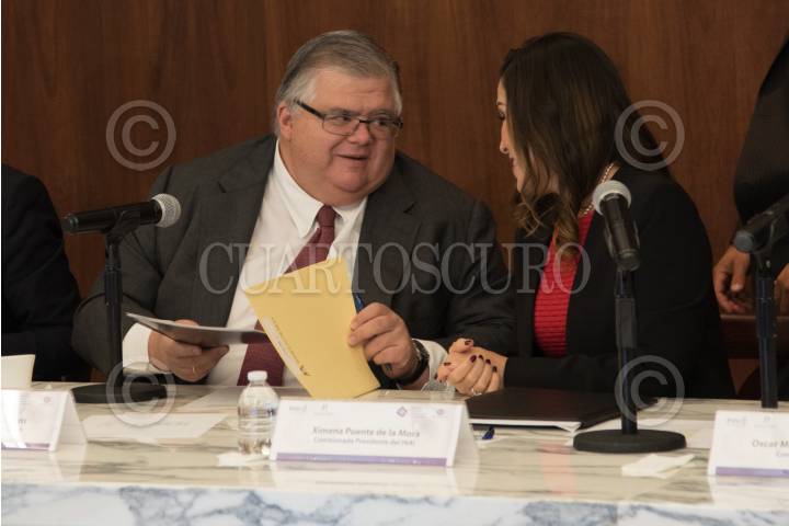 CIUDAD DE MÉXICO, 04MAYO2017.- Ximena Puente de la Mora, comisionada presidenta del INAI, y Agustín Carstens, gobernador del Banco de México, durante la Presentación de obligaciones de transparencia de Banco de México en el SIPOT de la PNT. FOTO: TERCERO DÍAZ /CUARTOSCURO.COM