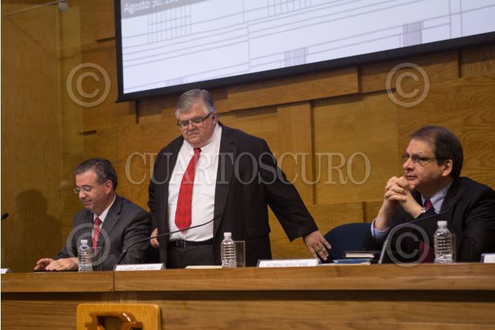 CIUDAD DE MÉXICO, 30AGOSTO2017.- Agustín Carstens Carstens, gobernador del Banco de México, Alejandro Díaz de León, y Manuel Ramos Francia, subgobernadores, durante el Informe Trimestral Abril Junio 2017. FOTO: TERCERO DÍAZ /CUARTOSCURO.COM