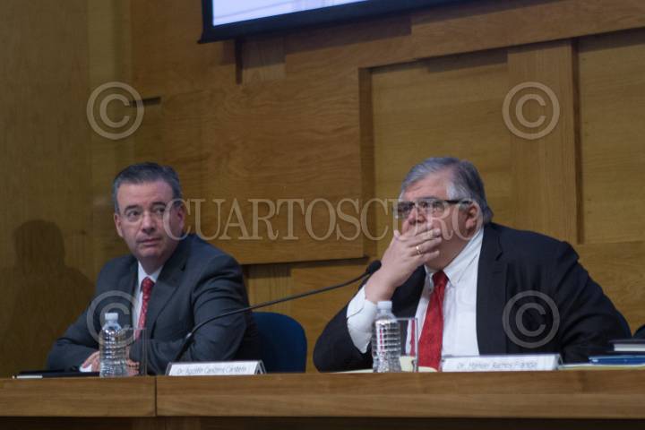 CIUDAD DE MÉXICO, 30AGOSTO2017.- Agustín Carstens Carstens, gobernador del Banco de México, y Alejandro Díaz de León, subgobernador, durante el Informe Trimestral Abril Junio 2017. FOTO: TERCERO DÍAZ /CUARTOSCURO.COM