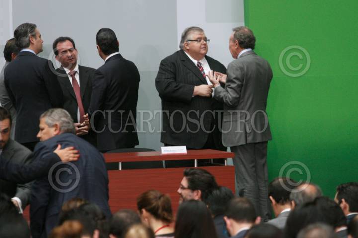 CIUDAD DE MÉXICO, 22NOVIEMBRE2019.- Alejandro Díaz León, gobernador del Banco de México; Guillermo Ortíz, ex gobernador del Banco de México (1998-2009); Miguel Mancera, ex gobernador del Banco de México (1994-1997), y Agustín Carstens, ex gobernador del Banco de México (2010-2017), durante el Seminario “La Importancia de la Autonomía de la Banca Central: Retos y Perspectivas” con motivo del 25 aniversario de la Autonomía del Banco de México. FOTO: GALO CAÑAS /CUARTOSCURO.COM