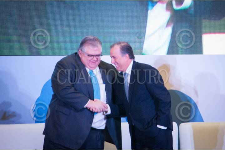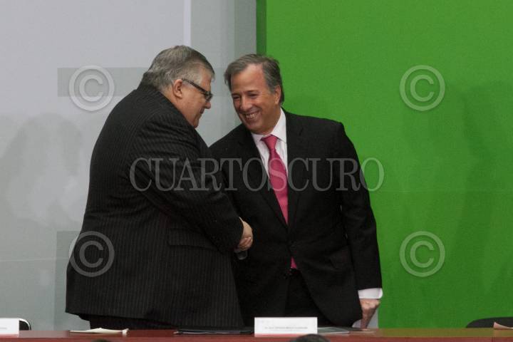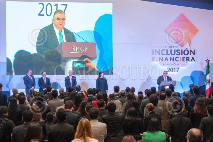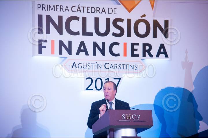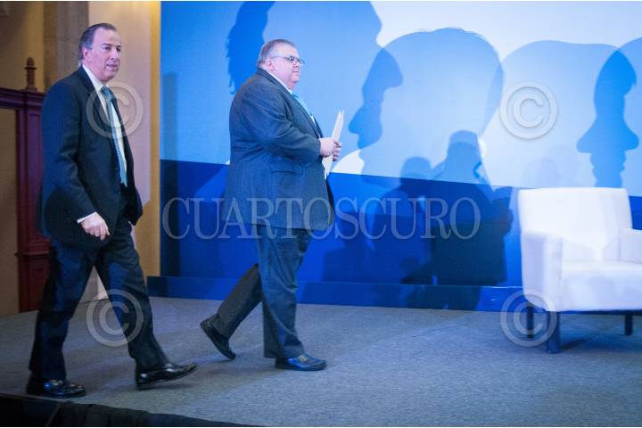 CIUDAD DE MÉXICO, 17NOVIEMBRE2017.- Agustín Carstens, gobernador del Banco de México, y José Antonio Meade Kuribreña, secretario de Hacienda y Crédito Público, encabezaron la inauguración de la primera cátedra de inclusión financiera “Agustín Carstens Carstens”, en el salón Tesorería del Palacio Nacional. FOTO: DIEGO SIMÓN SÁNCHEZ /CUARTOSCURO.COM
