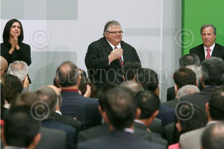 CIUDAD DE MÉXICO, 07SEPTIEMBRE2017.- El Gobernador de México Agustín Carstens Carstens recibió un reconocimiento durante la inauguración del Tercer Foro Internacional de Inclusión Financiera, en el Palacio Nacional. En el evento se cancelo un timbre postal por el 80 aniversario del Banco de México. FOTO: MOISÉS PABLO /CUARTOSCURO.COM