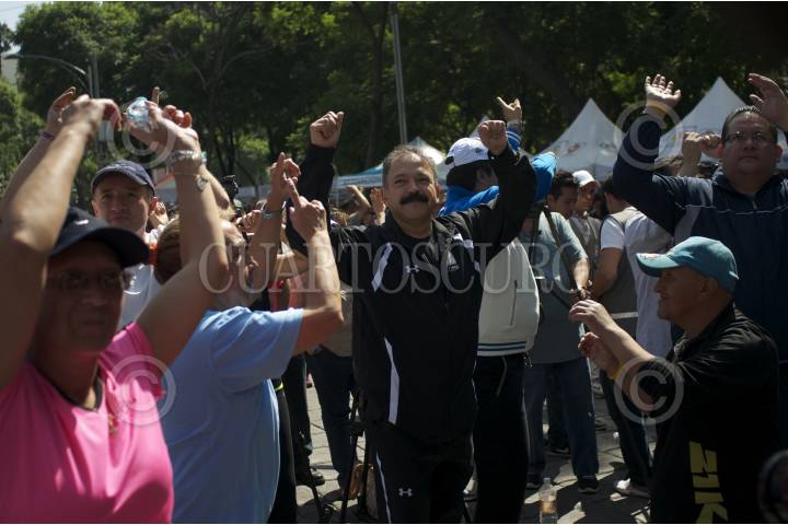 MÉXICO, D.F., 15JUNIO2014.- Armando Ahued, Secretario de Salud capitalino, bailó durante el programa de activación física promovida por el gobierno local donde se busca la detección del cáncer de próstata con motivo del dia del padre. FOTO: IVÁN STEPHENS /CUARTOSCURO.COM