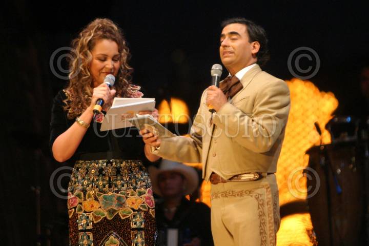 MEXDF04SEP2004.- La cantante Aida Cuevas y Adal Ramones condujeron la berbena popular que se realizo en el zòcalo capitalino con motivo de las fiestas patrias. FOTO: Eunice Adorno-CUARTOSCURO.COM