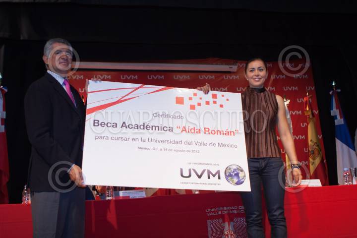 MÉXICO, D.F., 14AGOSTO2012.- El Maestro José Angel Ortega, Presidente de la Universidad del Valle de México y la Arquera Aída Román, medalla de Plata en los pasados Juegos Olímpico de Londres 2012, presentaron ante los medios de comunicación la beca "Aída Román" la cual estará destinada al apoyo de algún atleta de esa casa de estudios. FOTO: FRANCISCO RODRÍGUEZ /CUARTOSCURO.COM