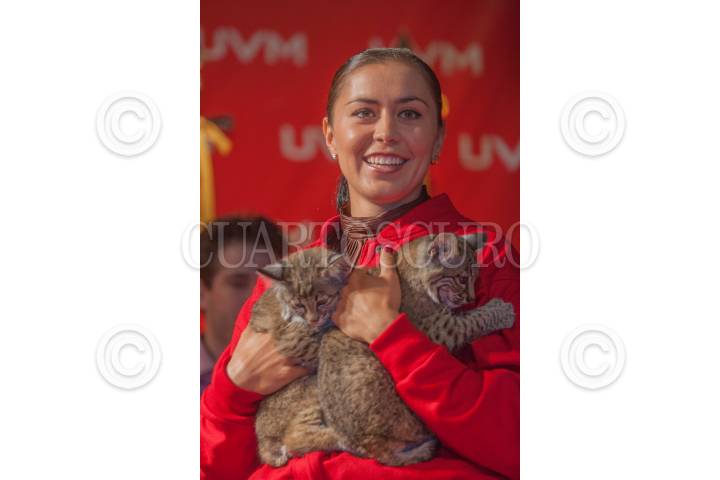 MÉXICO, D.F., 14AGOSTO2012.- La Arquera Aída Román, medalla de Plata en los pasados Juegos Olímpico de Londres 2012, en Tiro de Arco presentó ante los medios de comunicación a los Linces "Aída" y "Román" mascotas de la Institución. La medallista fue homenajeada en su "Alma Mater" además de que se fundo la beca "Aída Román" FOTO: FRANCISCO RODRÍGUEZ /CUARTOSCURO.COM