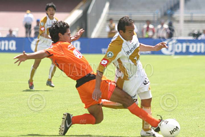 México D. F. ENERO 2004.- José Ailton (Pumas) y Pabel Pardo (América) en el torneo de clausura 2004 en el estadio Azteca. FOTO: Sandra Perdomo/CUARTOSCURO.COM